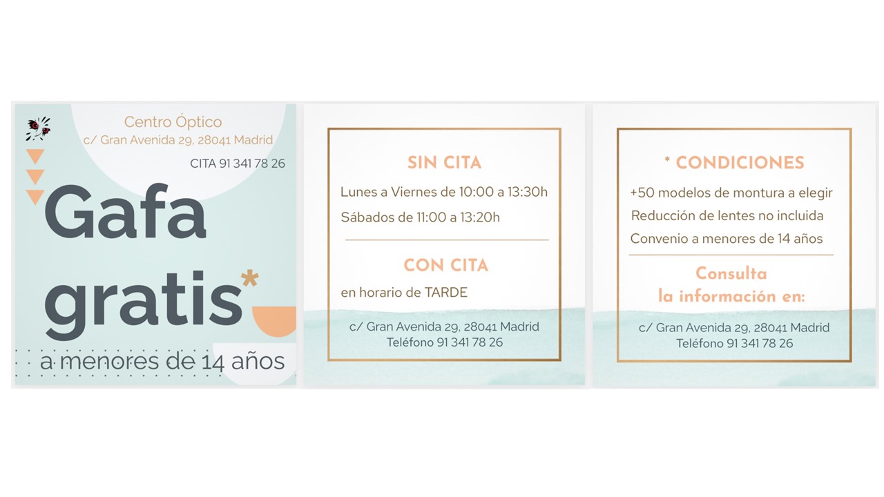 Cumpliendo una serie de requisitos entregamos una gafa completa gratuita a menores de 14 años